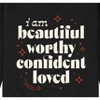 Instant Message - Beautiful Worthy Confident Loved - Inspirational - Positive Quote - Womens Crew Fleece - Instant Message is an online specialty fashion retailer for everything from funny to inspiring printed apparel. We offer a range of garments from long sleeve and relaxed fit t-shirts, to lightweight french-terry long sleeve shirts, hoodies and graphic print pullovers. Our products feature fun and trendy graphics that are perfect for any occasion and also make great gifts.
