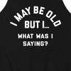 Instant Message - I May Be Old What Was I Saying - Men's Jersey Tank Top - Instant Message is an online specialty fashion retailer for everything from funny to inspiring printed apparel. We offer a range of garments from long sleeve and relaxed fit t-shirts, to lightweight french-terry long sleeve shirts, hoodies and graphic print pullovers. Our products feature fun and trendy graphics that are perfect for any occasion and also make great gifts.