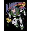 To infinity and beyond! Take your style to out-of-this-world levels with new officially licensed apparel for the whole family from the highly anticipated new movie Lightyear, featuring the origin story of Toy Story's lovable hero Buzz Lightyear! This men's crewneck sweatshirt features a retro-inspired, distressed graphic of Buzz and Sox in space with the Lightyear logo printed above.