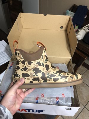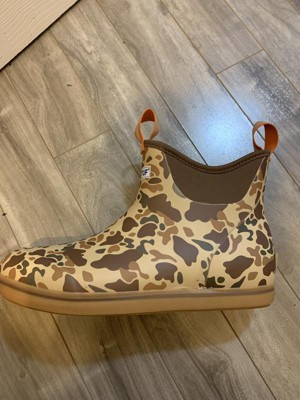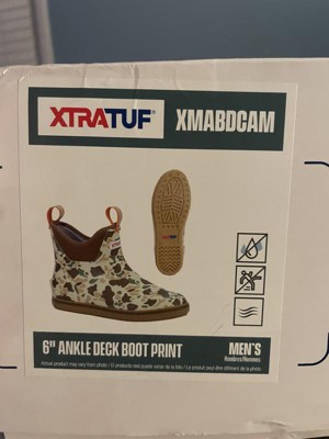 p>The Ankle Deck Boot collection, by XTRATUF, has a lightweight design with the same slip-resisting Chevron outsole found on the Legacy boot collection. These waterproof 6-inch men's boot, in duck camo, has pull-tabs for placement. Inside the boots have an XPRESSCOOL cooling liner that keeps feet comfortable in both cool and warm environments. An SRA-rated, slip-resisting outsole composed of an an exclusive rubber compound grips the floor surface, providing sure footing. This boot is constructed with hand-layered rubber, and so not classified as an XTRATUF commercial grade boot. For those looking for a commercial grade ankle height deck boot please search for the XTRATUF Wheelhouse Boot.