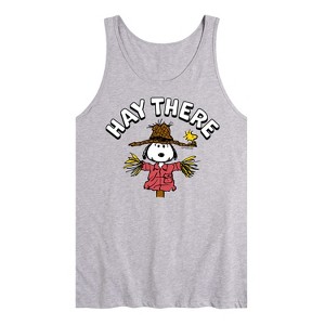 Peanuts - Snoopy Scarecrow Hay There - Men's Jersey Tank Top - From the best-loved comic strip in history comes officially licensed PEANUTS apparel for fans everywhere. Show your love for Charlie Brown, Snoopy, Woodstock, Lucy, Linus, Pigpen and the whole gang. Copyright Peanuts.