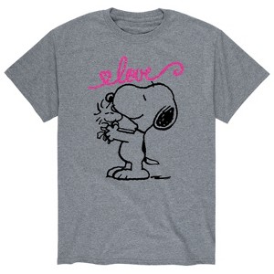 Peanuts - Love Snoopy and Woodstock - Men's Short Sleeve Graphic T-Shirt - From the best-loved comic strip in history comes officially licensed PEANUTS apparel for fans everywhere. Show your love for Charlie Brown, Snoopy, Woodstock, Lucy, Linus, Pigpen and the whole gang. Copyright Peanuts.