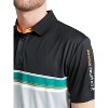 This short sleeve polo is crafted from 100% polyester, featuring DryCool technology for exceptional moisture-wicking and breathability. It showcases a stylish knitted collar with vibrant printed stripes across the chest and a contrasting color inside the collar stand. Closure: 3-button placket. Ideal for staying cool and comfortable, this polo combines functionality and style in a fresh hue.