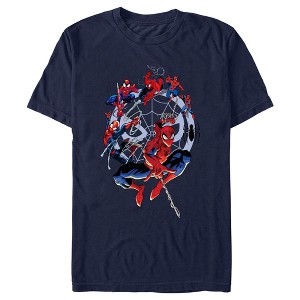• Strut your stuff with this stylish new 60th anniversary men's t-shirt that is perfect for this occasion! Featuring different iterations of Spider-Man throughout the years slinging webs across the front.