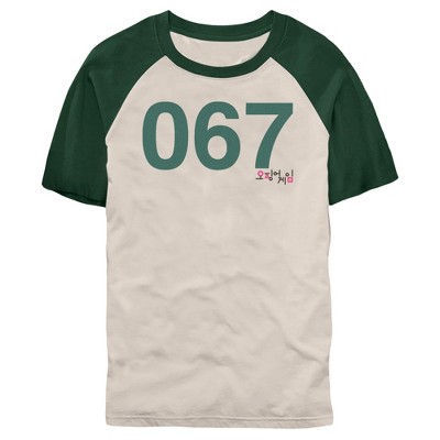 Get into the game with this officially licensed Player 067 Logo Men's Graphic Baseball T-Shirt from the popular Netflix series Squid Game! Cosplay as Sang-Woo aka player number 218 with this fun tee featuring the number "218" and the iconic TV series logo printed below. These Squid Game-inspired designs are ideal for fans of all ages so join the games and root for your favorite player to win in this new graphic apparel!