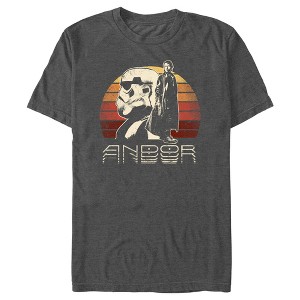 • Strut your stuff with this stylish new everyday Men's T-Shirt that is perfect for every occasion! Featuring the rebel spy himself Cassian Andor and Stormtrooper with a retro-style sunset in the background with the word "Andor" printed below stacked.