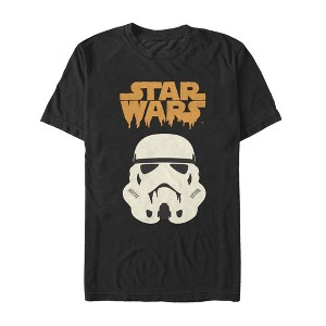 Come to the Dark Side: it has the best Halloween candy and the Star Wars Halloween Stormtrooper Helmet Black T-Shirt! A classic stormtrooper's mask drips from the mouth and "Star Wars" is printed in an orange drip-style text for the best Halloween tee in the galaxy.