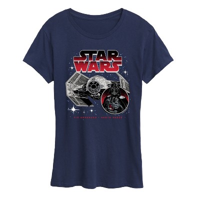 Learn how to build a starfighter just like Darth Vader's with the Star Wars TIE Advanced Heather Navy Blue T-Shirt. This durable graphic tee features all the details of a TIE Advanced x1 Starfighter built by Sinear Fleet Systems.