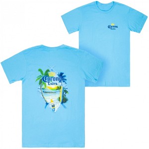 Mens Corona Extra At The Beach Aqua Front and Back T-Shirt - 1 of 4