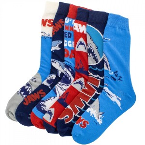 Mens JAWS Assorted Ivory Crew Socks, 6-Pack