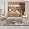- [Upholstered Dining Chairs & Bench] The four dining chairs and multi-functional bench are upholstered with soft linen fabric, which provides a comfortable and inviting seating experience. The thick cushions add an extra layer of comfort, making this set perfect for long family meals or hosting guests. The linen fabric is skin-friendly, breathable, and easy to maintain, ensuring it stays looking fresh.
