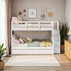 - [Spacious Pull-Out Storage Drawer] Underneath the lower bunk, a smooth-gliding pull-out drawer with three deep compartments provides ample space to stash off-season clothes, blankets, or sleepover essentials.