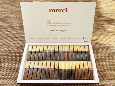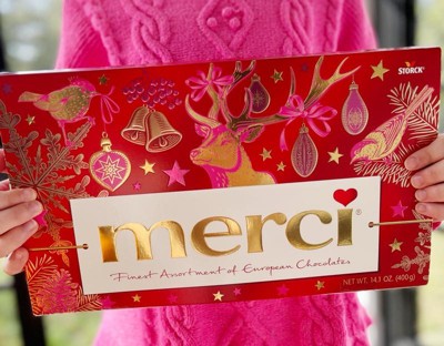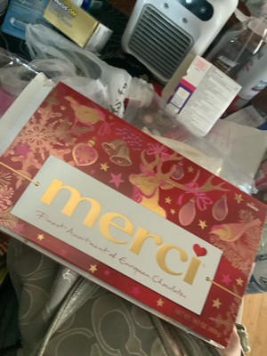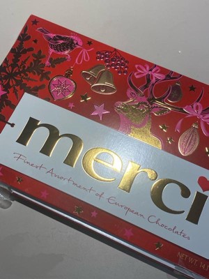 - One 14.1-ounce box of merci Finest Assortment European chocolates