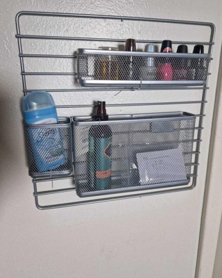 [This review was collected as part of a promotion.] This silver mesh wall organizer is true to size. I like that there are so many container options. It does seem like this may fall off the wall, if it gets overweighed. There are many matching mesh pieces you could pair this with. I also like that this product it is partially see through, so you can more quickly find the item you need. I think that this organizer could work well in a teen’s room or maybe a dorm desk area. I received an incentive to write this review.
