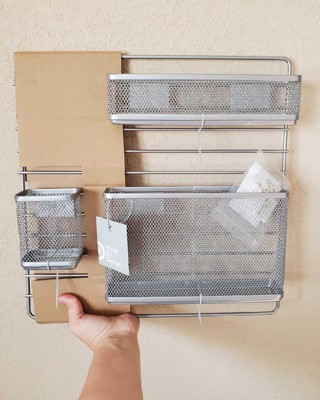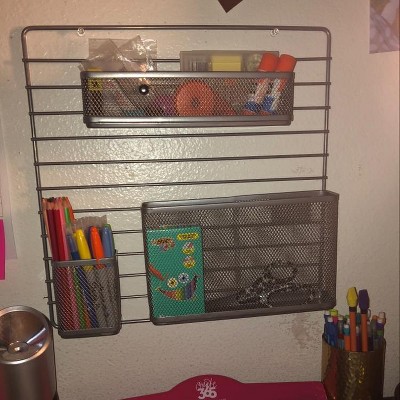 [This review was collected as part of a promotion.] This mesh additional wall organization tool definitely comes in handy. You can screw it up on the wall or add to your desk. The screws and screw sockets come with it. It has three different containers that you can use for different things. It definitely will save you some room while also helping you to be a little more organized with things. It comes in this silver and the item itself is extremely sturdy. I’d recommend this item. I received an incentive to write this review.
