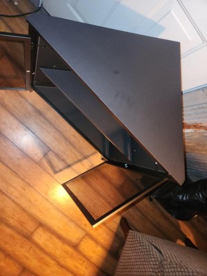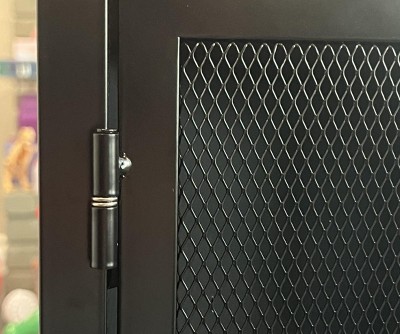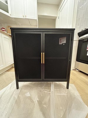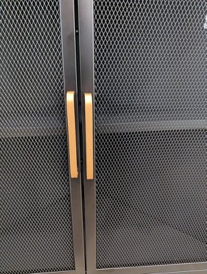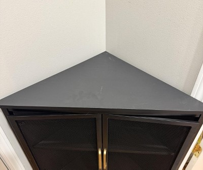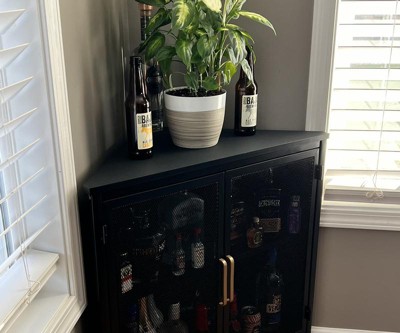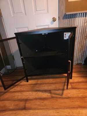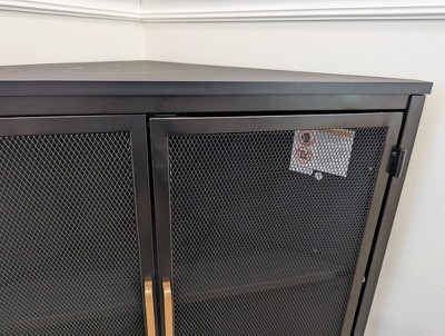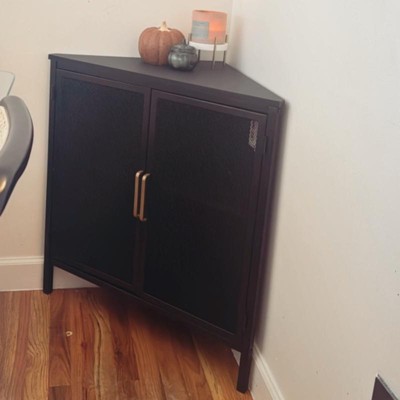 Mesh Corner Cabinet Black - Threshold™: Sleek Metal Storage with Golden Handles, V-Shaped Design