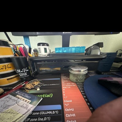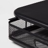 - Features a pull-out mesh drawer for storing small office essentials