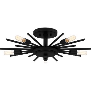 The Mesquite semi-flush mount radiates modern style with its geometric sputnik design and choice of matte black or weathered brass finish. Hang this versatile piece in a variety of spaces including a bedroom, hallway, home office , or living room. Pair with vintage filament bulbs for an added element of flair.