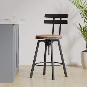 - (Durable Metal and Wood Construction): Constructed with a sturdy iron frame and a firwood seat, this barstool offers long-lasting durability while showcasing a stylish wood-like finish that complements the metal framework.
