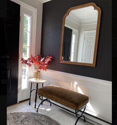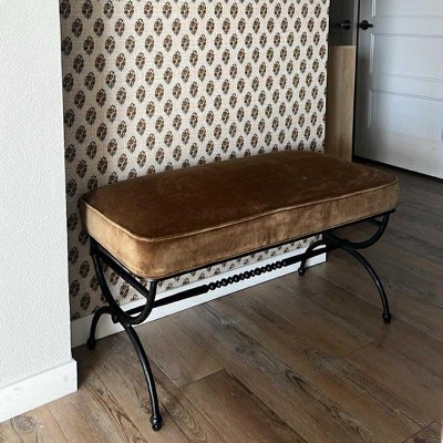 I am in the middle of redecorating a guest room and I saw this bench a few weeks ago and instantly fell in love. I placed it in my cart to buy and it sold out before I could complete the order! I was so bummed. I kept checking and got lucky. This is an amazing piece - beautiful design and very high quality. It weighs a ton - the metal is not tubular - it is iron. The color is described on the website as olive green - it's really more of an ocre color and I absolutely love it.