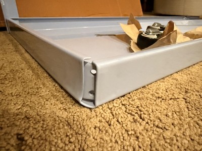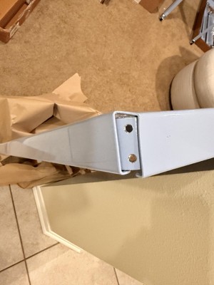 The desk itself is great; but I the process to put it together wasn’t. Two of the screw holes were drilled incorrectly and/or had powder coating in them rendering them unusable. After a trip to the hardware store to pick up a $30 tapping kit, I re-tapped the threads and was able to put it together. The size and blue color looks great in my small home office, just annoyed at the process to put together.