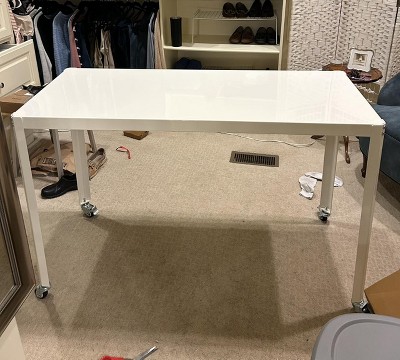 This deal is solid. It went together easily for me. As our home lifestyle changes, things around our home get moved. This desk is perfect for that. I can wheel it around easily. It's heavy and getting it into the cart was a feat for my petite self, but it got done. It's a cream white. I wanted extra space for doing whatever with my three kids cause sometimes the kitchen table doesn't work. I like it.