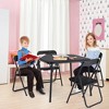 Sturdy and Stable: Crafted from a powder-coated metal frame, the folding card table and chair set is durable, with chairs featuring a triangular structure for enhanced stability and support of up to 100 pounds, ensuring reliable seating for any activity Comfortable Upholstered Seating: The square table and chair set features PU upholstered seats and backs with high density sponge padding, and a padded tabletop, making it ideal for eating, reading, or playing Space-Saving Foldable Design: This children's activity table and chair set provides a space-saving solution with its foldable design, allowing for easy storage and portability, making it effortless to transport for events or tuck away when not in use Safety Features for Peace of Mind: With protective floor caps and rounded corners, the table and chairs prioritize safety, helping to prevent injuries during use; the locking legs provide additional security, preventing accidental collapse while in use Versatile Multi-Use Functionality: This versatile set serves as a folding dining table and chairs, a portable desk for arts and crafts, or a cozy reading nook for children, making it perfect for homework, snacks, and gatherings.