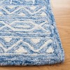 Featuring an intricate pattern that artfully combines geometric shapes and tribal-inspired motifs, the rug's design is accentuated by a stunning palette of tranquil blue and soft ivory hues. Constructed using a hand-tufted technique, the 1/4" pile height offers a delightful balance of comfort and durability, making it suitable for both high-traffic areas and intimate spaces.