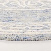 Introducing our exquisite hand-tufted area rug, a true masterpiece of craftsmanship and style. This round rug, sized at a versatile 6ft diameter, boasts a harmonious blend of blue and ivory hues. Skillfully made in India, the rug features a low pile height of 1/4 inch, providing a sleek profile and easy maintenance.