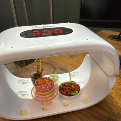 Resin DOES NOT CURE after a week in full sunny window. I am so glad I bought this on sale for $25 because feel like I threw my money away. My daughter was so excited to make the buffet items but what a waste of money when the resin stays sticky just bought a UV flashlight (not MGA) and we’ll see if that works.