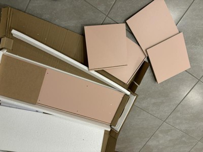 The box was in rough shape upon delivery. Huge rip down the middle, taped up, and the ends were damaged as well. Damage to the itellm seemed limited to one corner of one piece, where a chunk was taken out. More importantly, the hardware was missing, so I returned it.