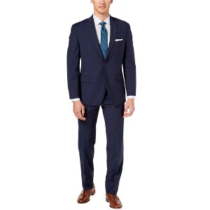 Michael Kors Mens Mini Grid Two Button Formal Suit, navy, 44 Short / 37W x UnfinishedL
