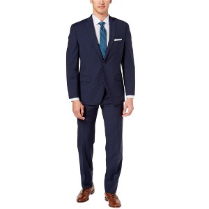 Michael Kors Mens Mini Grid Two Button Formal Suit, navy, 46 Long / 39W x UnfinishedL