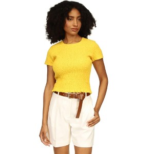 Style Number: MT451EVDHJ Gender: Womens Country of Manufacture: China Collar Style: Collarless Fastening: Pullover Fit: Not Specified Material: 60% Polyester (Recycled),38% Polyester,2% Elastane Pattern: Solid Season: All Seasons Density: Medium Weight Sleeve Length: Short Sleeve Occasion: Casual Theme: Modern