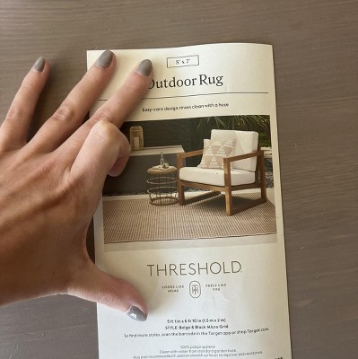 This Micro Grid Rectangular Woven Indoor/Outdoor Area Rug from Threshold™ makes a dynamic addition to any floor. This all-weather rug is decorated with a seamless micro grid pattern to give a relaxed and comfortable feel to your space. It's crafted from 100% polypropylene with a woven construction for a soft feel underfoot, while the flat pile height allows for easy upkeep and stands up to high-traffic areas in your home or outside. Spread it out in your dining room or backyard, or lay it on your patio for versatile use.