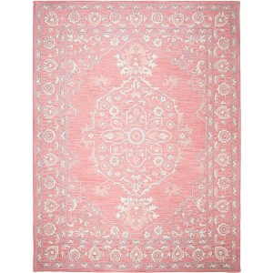 Introduce an elegant touch to your home with this exquisite area rug. Measuring 9 by 12 feet, this large rectangular piece is crafted with a subtle pink and ivory palette, offering a soft color scheme that complements various interiors. Hand tufted with a blend of wool and cotton, it provides a tactile richness underfoot. The inclusion of latex ensures durability and shape retention. Originating from India, this rug embodies a traditional style with an intricate Oriental pattern that enhances its artistic appeal. At a height of 1/4 inch, it fits seamlessly into any space, adding warmth and character without overwhelming your decor. Perfect for living rooms, dining areas, or bedrooms, this rug brings a balance of style and functionality to your home.