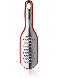 The new Microplane Elite Extra Coarse Grater can tackle a host of ingredients, including soft cheese like mozzarella, as well as medium-hard cheeses, like cheddar, provolone and Swiss. It's a champ at making beautiful slaw from cabbage, and quickly grating root vegetables like potatoes, onions and carrots for salads, casseroles, meatloaf, frittatas, and more. You can also use the Extra Coarse blade style to grate cold butter for pastry, and easily grate fresh coconut for garnishing cakes. Unique to Microplane graters, the new Elite series includes a transparent cover that doubles as a grating catch feature and measuring cup with generous 1-cup capacity.