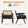 Mid-Century Farmhouse Accent Chair Wood Armchair with Rattan Backrest Linen Cushion Beige Easy Assembly for Living Room Bedroom