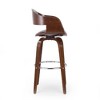 Mid-Century Modern Swivel Bar Stool with Faux Leather Upholstery, Wood Veneer Frame, and Chrome Footrest - 1 of 4