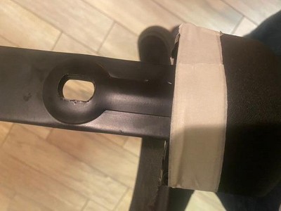 2. At step 2 to attach the locking pin, there was NO LOCKING PIN ASSEMBLY, and a hole in the bottom of the small parts bag. And no locking assembly in the box where it may have fallen out inside the box.