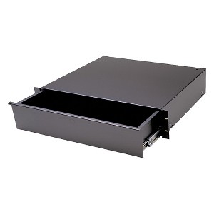 The Middle Atlantic 2-Space Rackmount Drawer is highly functional for media storage. All rack drawers are fully enclosed, 14" deep and have a road-rugged, metal housing; roller slides; and loop handles. Black finish. Don't forget the optional UD keylock (sold separately) that further protects goods!
