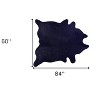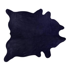 Add some artistry to your room with this 5-foot x 7-foot midnight cowhide hand knotted area rug. Ideal for spaces with kids and pets, this rug is stain resistant to help repel stains and spilled liquids. Crafted by skilled artisans, this hand knotted rug is genuine and unique. No two will be exactly alike. Area rugs help to give warmth and sense of home to your space. 60-inch H x 84-inch W x 0.1-inch D