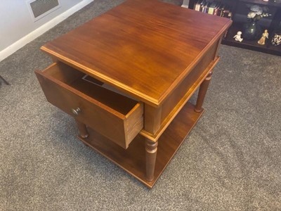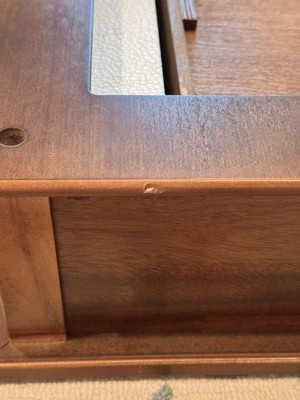 [This review was collected as part of a promotion.] Customers frequently praise the table for being solid, sturdy, and well-made, often noting that it feels like a high-quality piece of furniture. One review highlights the "perfection of the craftsmanship". Appearance and Style: The hazelnut finish is a popular feature, with one customer appreciating the "classic/older piece" look. The handle is also noted for having a "vintage yet modern look" that adds character to a room. Assembly: Several reviews mention that the table is easy and quick to assemble, with one person stating it took only a few minutes