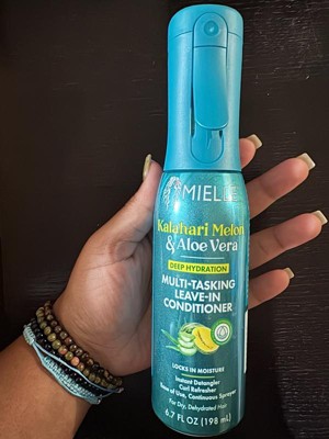 [This review was collected as part of a promotion.] I’ve been using the Mielle Kalahari Melon & Aloe Vera Multi-Tasking Leave-In Conditioner, and it’s become one of my go-to products for hydration. The spray is lightweight but very moisturizing, and it instantly makes my hair feel softer and easier to detangle. I especially like using it on dry or tired curls to refresh them without buildup. It locks in moisture well and helps reduce dryness and frizz while keeping my curls bouncy and defined. The scent is fresh and clean, not overpowering, and the spray bottle makes application quick and mess-free.
