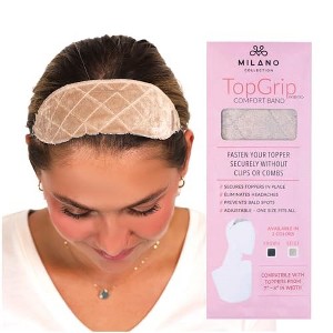 Milano Collection's patented Original TopGrip Comfort Band allows your Topper or Wiglet to stay in place all day long without sliding off. It reduces or eliminates the need for clips, combs, tape, or glue. Its compact size is ideal for topper wearers and wig wearers trying to eliminate bulk by the nape. Available in two colors and three sizes. Seamlessly secure your toppers, wiglets and wigs in place. Wear any time, any day, hassle-free. The Top Grip prevents wig-associated headaches, tension, and scalp pain. It is made of soft velour material that creates a grip and allows for comfortable wear with a secure fit. The adjustable strap is thin and translucent and attaches to the grip band undetectably and snugly around the circumference of your head. You can tighten or loosen it easily for the perfect fit. Milano Collection was established in 2004 to offer the highest quality human hair wigs and toppers as well as game-changing wig accessories, to help you look and feel your best.
