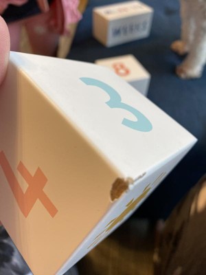 These milestone blocks are so cute and versatile. You can label any photos you capture with days, weeks, months or years so you will never forget it the moment! The colors are gender neutral too. They are a little heavier than i would expect to be around a baby so just need to be careful when using them.