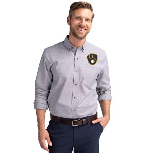 Milwaukee Brewers Cutter & Buck Stretch Oxford Mens Big and Tall Long Sleeve Dress Shirt - 1 of 1