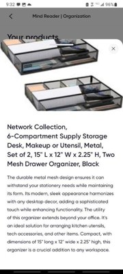 Mind Reader 2pc Mesh Deep Drawer Organizer Black: Metal Desk & Office Drawer Organization Set