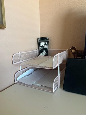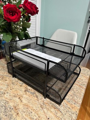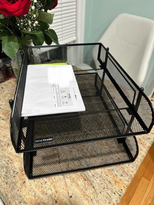 [This review was collected as part of a promotion.] The Mind Reader Network Collection 2-Tier Paper Tray is a game-changer for keeping my workspace organized and efficient. This stackable, letter-sized paper tray has proven to be an essential addition to my desktop. Sleek and Stylish Design: The silver metal mesh construction of this paper tray not only looks sleek and professional but also adds a touch of modernity to my workspace. It's an elegant addition that complements any office decor. Ample Storage Space: The two-tier design provides ample storage space for my letter-sized documents, files, folders, and even notebooks. It helps me keep my important materials within easy reach, making me more productive. Stackable Convenience: The stackable feature is a space-saver. I can add additional trays to create more storage levels, keeping everything neatly organized while conserving desk space. It's a smart design for small or cluttered workspaces. Durability: This organizer feels sturdy and well-constructed. The metal mesh is robust and doesn't show signs of wear or bending, even with daily use. It's built to last, and that's something I truly appreciate. Easy Access: With the two-tier design, I can easily see and access my documents, making it effortless to locate what I need without sifting through piles of paper. It promotes a sense of order and efficiency. Non-Slip Feet: The non-slip rubber feet at the bottom keep the tray securely in place, preventing it from sliding around on my desk. It adds stability to the organization process. Versatile Use: While it's perfect for holding papers and documents, I've also used this organizer for keeping notepads, envelopes, and even a few office supplies. Its versatility is a big plus. I highly recommend it.