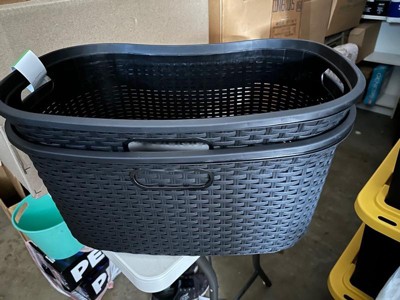 Mind Reader 2pk 40L Premium Wicker Look Laundry Basket Black
